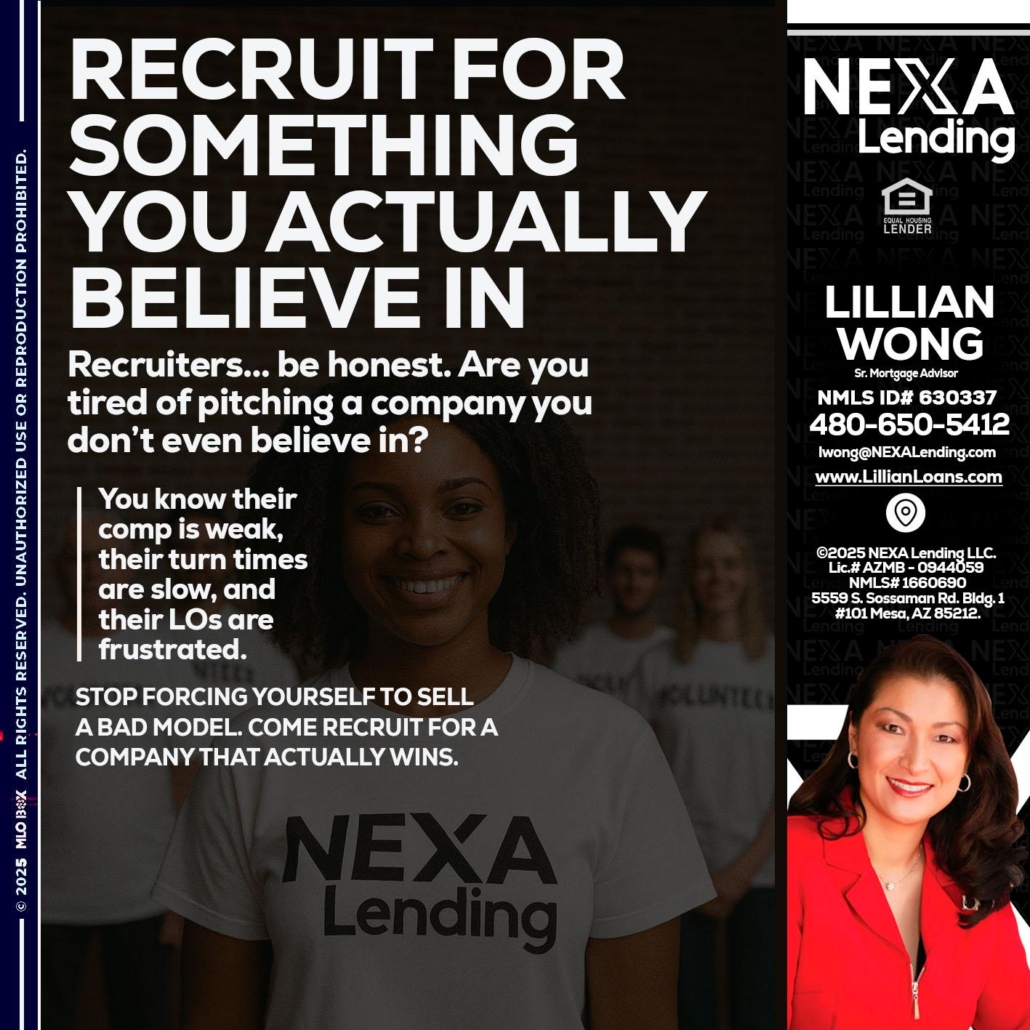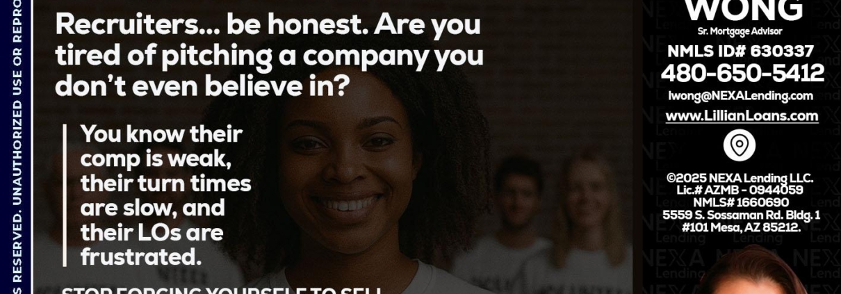 Hi, my name is Lillian Wong. I’m a Loan Officer with NEXA Mortgage, LLC (1660690), offering personalized mortgage solutions, fast customized quotes, great rates and service with integrity.